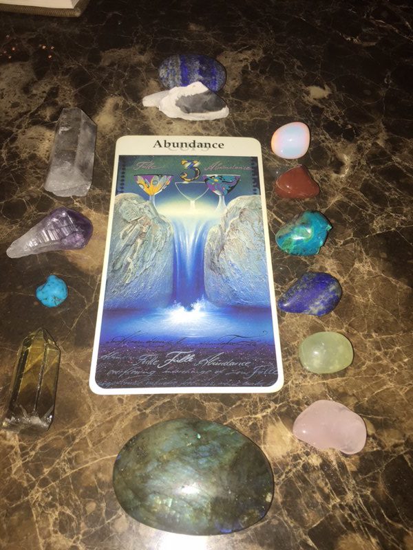 Today’s card is Abundance. There are three cups on top of an ever-flowing waterfall. On the card, it says ‘Everflowing interchange of love’. Combined with today’s 2 energy of insight and enlightenment… it’s a good day to be with your tribe. Celebrate your success.
