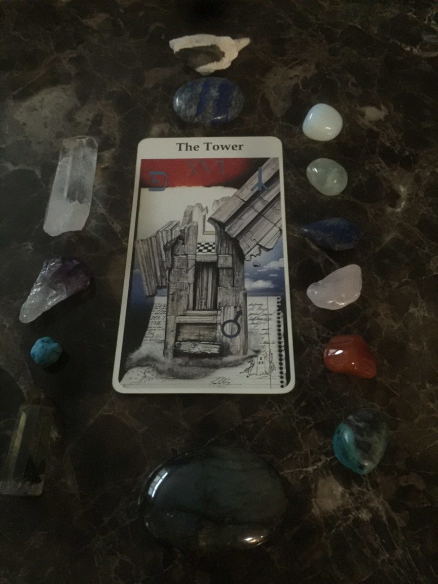 Today’s card is The Tower combined with the 4 energy (change, co-operation, responsibility) is telling us that our old beliefs aren’t working for us. This tower that we have built up over the years is crumbling. Our old belief system might have worked for us at one point in time, but change is the only constant in this universe.