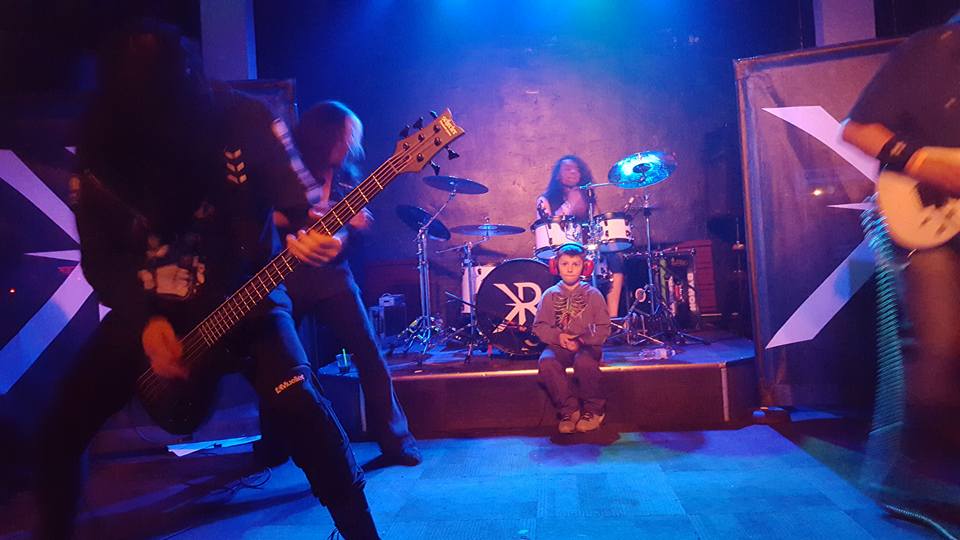 There was a woman there with her two kids so we brought the youngest of the two up on stage with us. Alexis propped him up on the drum riser and in front of the drums, then gave him a pair of sticks. The kid sat there through the whole performance wearing these monstrous headphones, the kind that the guys on the runway wear to protect their hearing. After the show, which by the way… thank you Spokane. Great show, great people… so after the show the parents bought them a couple of Kill Ritual t-shirts and CD’s and Alexis signed the sticks. I love seeing young kids get into Rock music. It gives me hope for the future.