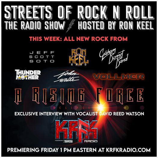 Special Premiere Day/Time: Friday 1 PM Eastern on http://KRFKradio.com – this week: another New Rock Showcase featuring fresh cuts. You’ll hear the world radio premiere of the new Ron Keel Band single “When This Is Over,” and the radio debut of the brand new single from ARF – A Rising Force, along with my exclusive interview with their new vocalist David Reed Watson.