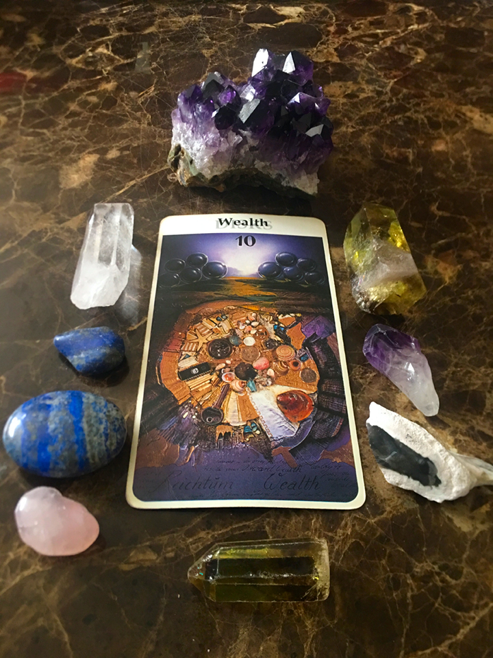 I’ve pulled this card a lot in the last few months. This card is about manifestation and wealth. Now wealth can come in all forms.