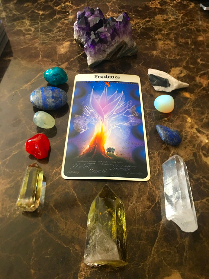 Today’s card is the Lord of Prudence. It seems that I pull this card a lot. Is it telling me that I really need to work on my own inner development more than focusing outside of myself? Most definitely. So what is the lesson here for all of us? I think it’s this… When we get irritated with someone else that is a for sure sign to look inside of ourselves to see why it irritates us so much. What part of ourselves did those buttons push? The Universe is giving us an opportunity to recognize this and promising us that if we can get to the bottom of our own issues that expansion will come.