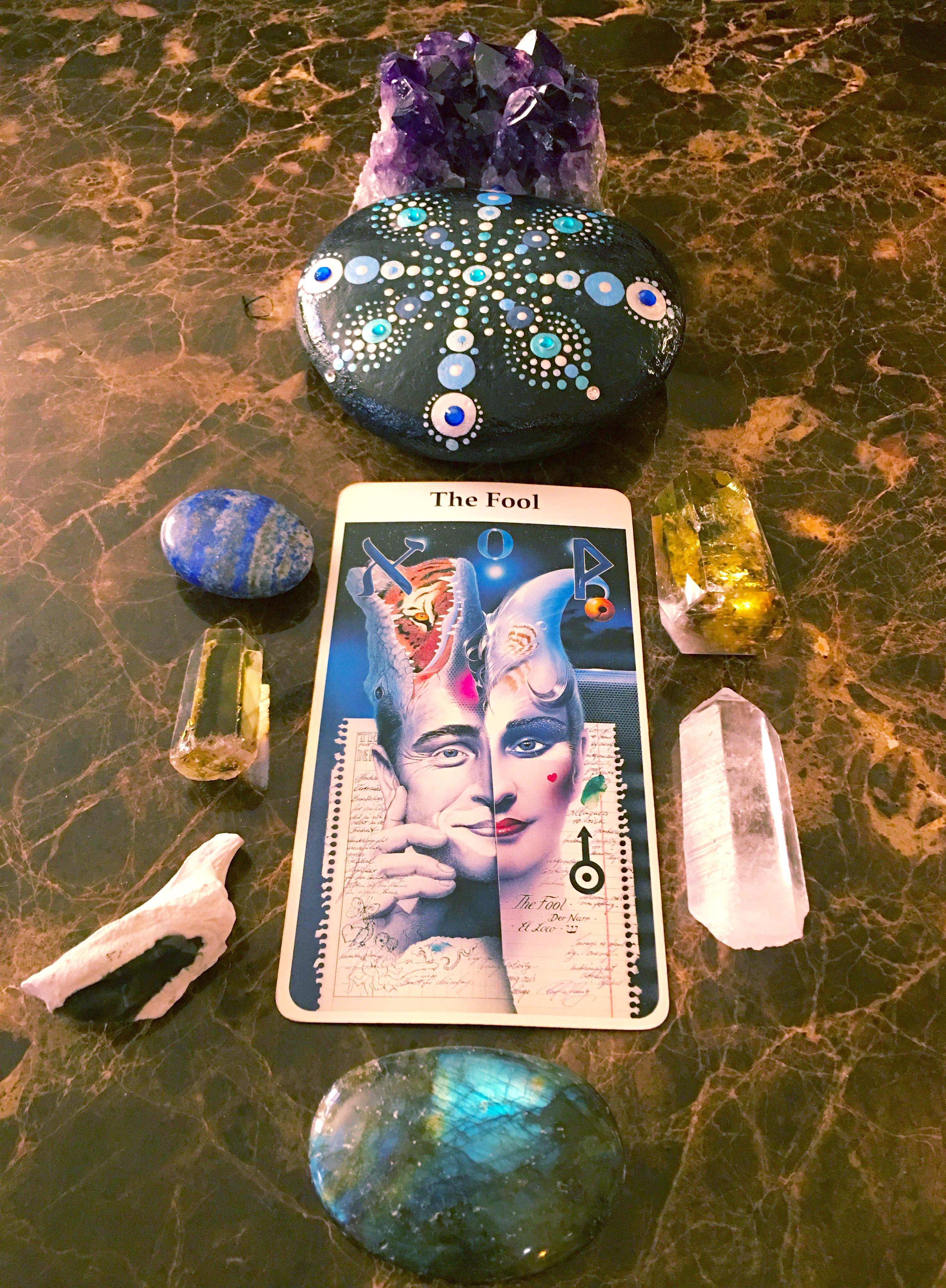 Today’s card is the Fool. This is a magical card because it signifies the Yin and the Yang. Completion and Beginning. Male and Female.