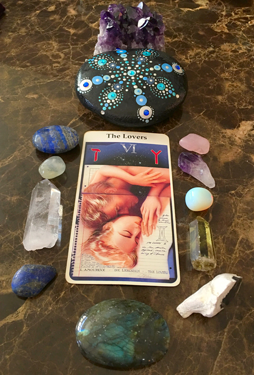 Today’s card is the Lovers. This is a complex card because it doesn’t necessarily mean what you think it means. It could be about lovers uniting, and becoming one (today’s energy of 5; Sexual, free-thinking and attractive), could very well be for you. But, on a more spiritual (not that sexuality isn’t… don’t get me wrong. Ask me about the Magdalen Manuscript sometime.) plane, it is saying that we’ve come to terms with love. Love might have been a purely sexual, carnal type of attraction… again, not that it is a bad thing, but we are talking about a love for self in this instance.