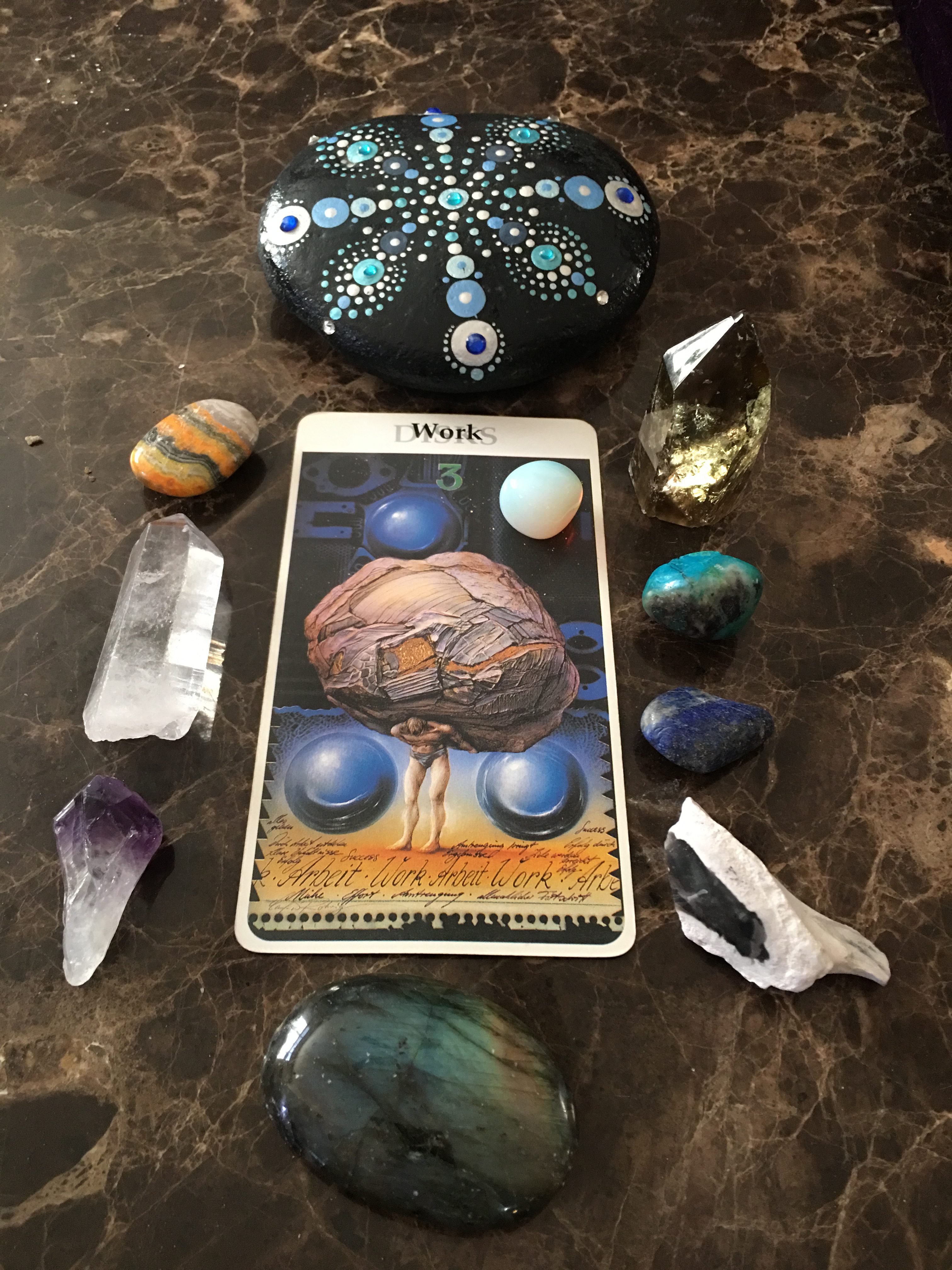Today’s card is the 3 of Disks. This card signifies work. It’s acknowledging that we’ve worked hard, progress has been made and people have noticed what you’ve done thus far… but it’s not time to stop (is it ever?) because if you do all of that hard work will have been in vain.