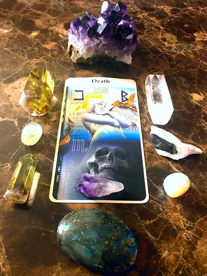 I always giggle when other people see this card. Their worst fears pop right up and they gasp in horror, although it does signify endings.